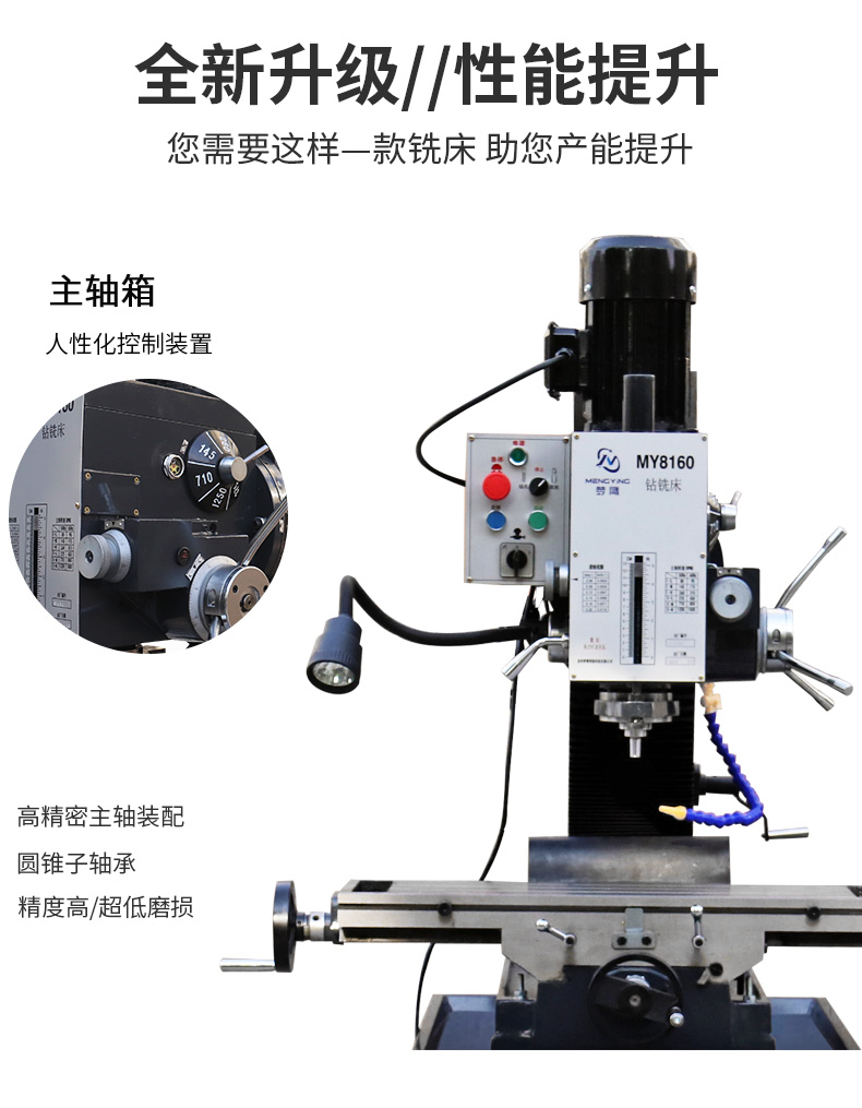 夢鷹MY8160自動鉆孔鉆銑床大功率工業(yè)級小型銑床
